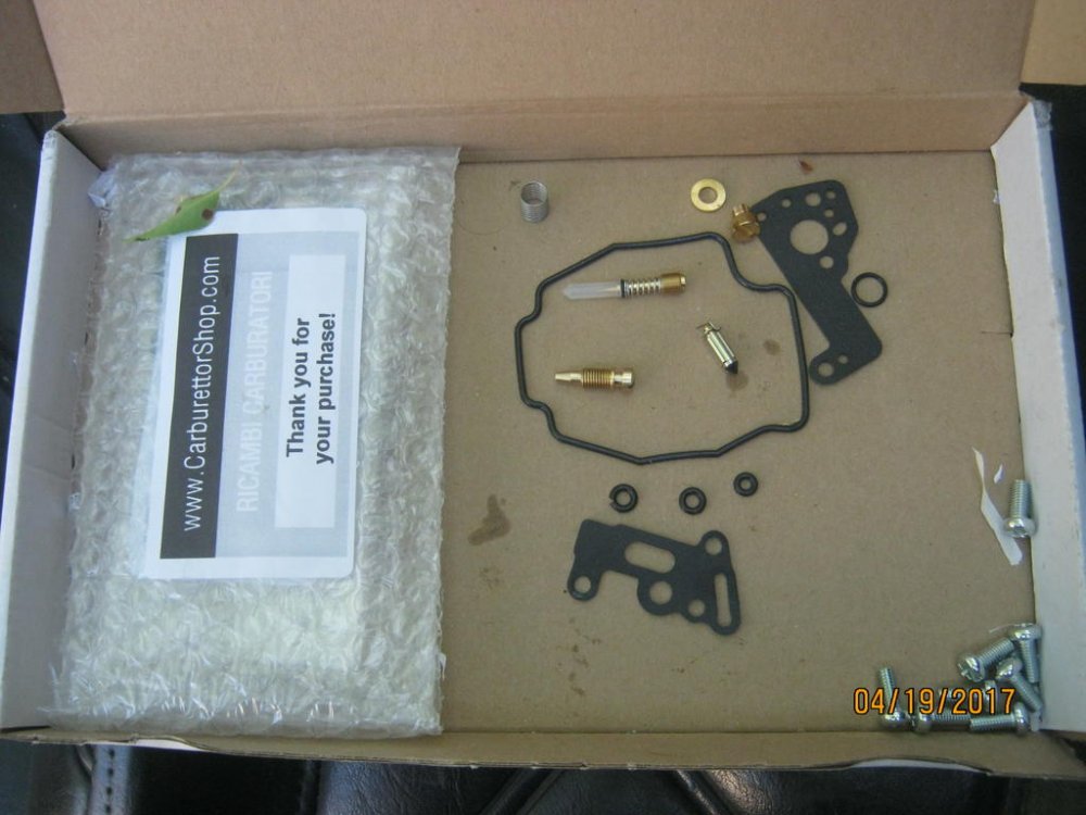 Ok I actually ordered this kit, but once again the float valve don't fit, but I like what all comes in the kits. new mixture screw with spring, washer, and oring. new drain screw with oring, this one is slotted not phillips I put it in one of the carbs that desperetly need one. The last set of carsb I got one of the mixture screws is buggered up. 8 screws to replace the existing screws. or in case you have parked near @cowpuc and he snagged one. the brass washer and screw for the jet block. The gaskets for the enrichment valve and the jet block feels and looks kind of like a rubber substance of some sort, the one I got from K&N definatley a different matterial from what I can tell this kit is not a bad deal. O and the spring for inside your slid underneath the plastic screw.
