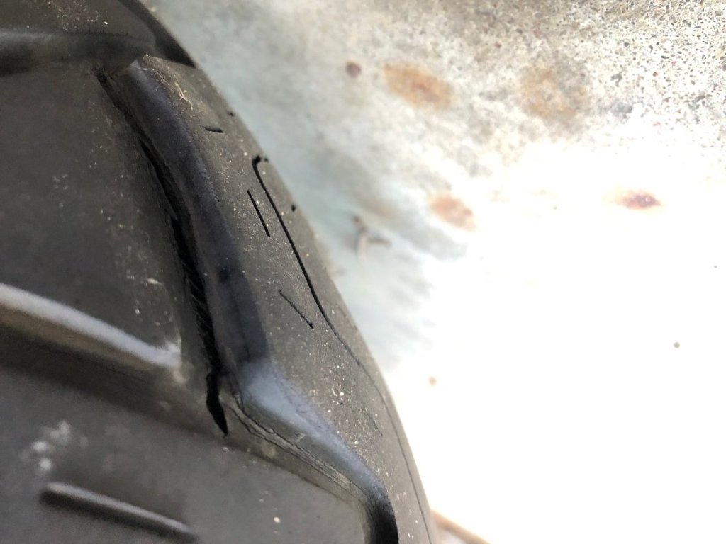 I happened to look at my rear tire this morning while getting the size off it. Luckily I had stopped where I did. The tire tread is cracking and I could pull down a little on it and see the cord under it. This is a 6 year old Kenda Kruz K673 with about 10K miles. The last one of these I had about 7K miles and a big chunk of center tread came off while me and my wife were out riding. Didn't notice it until we got home and happened to stop with that missing patch showing from the rear. We had ridden about 200 miles. I always park it in my carport with the tires sitting on carpet. I'm not sure I want to try another one of these. I like the ride and tread pattern better than many others that don't seem to have enough tread.
