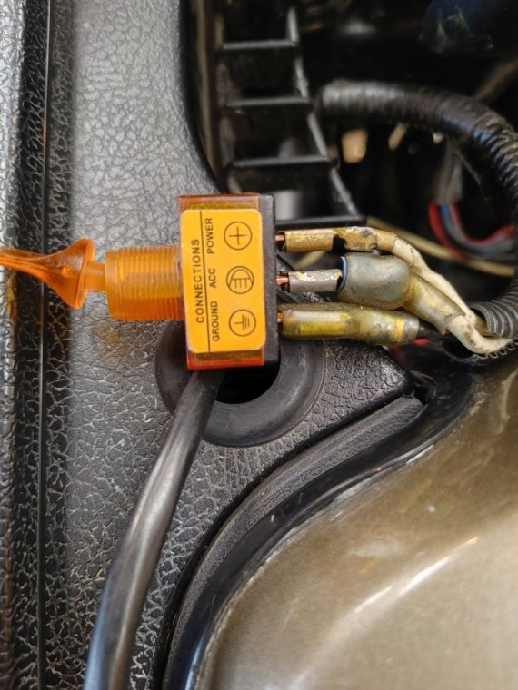 Thanks Cimmer: I was wondering if a replacement wiring harness might be a good idea, as I agree I have no idea what else he chopped up to get it to work. As far as the battery sensor is it related to the battery? Do I have to buy a Yami battery or can I use an aftermarket one. Thanks I got into the wiring and I think I have everything finally fixed up. Now the warning lights are showing Low brake fluid, and a headlight indicator. I have to yet check the fluid levels but I did look into the headlight and it is working high/low with the switch on the handlebars, but the warning is still there. He had put in a toggle switch to turn the headlight on and off, and when the headlight is turned off with the toggle switch it is still on but not very bright. He has used a 3 contact switch with a ground, plus voltage and connection, so not really to sure how he has configured the wiring. I took 2 pictures of it and posted it. If that might give some indication on what he did. The plus and light are both connected with a white wire and the ground is connected with a black wire. -