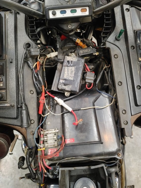 Skydoc I have a constant warning but there is nothing showing up as to what the warning is. The wiring is a mess and I am not going to worry to much about the warning until I get right into the wiring and make sure that everything is actually connected. I have a feeling that the previous owner did quite the butcher job on the wiring under the center cover. He has a toggle switch running the headlight so that's an indication that I don't think he knew what he was actually doing. I like your idea of the fuse block and think I would like to incorporate that into the wiring system, looks like it might be a tad easier to maintain after the fact, if you could can you give me some more info and pricing on that please. I have a mailing address in Washington state to receive product so that should help with getting parts and pieces, I am not going to be in a hurry as I would like to get it running and looking good before I insure and drive it. I am expecting that this year and winter will be a total project for this bike. I seem to get somewhat carried away when I do restoration work...lol... But there is nothing wrong with a great reconditioned bike, always good for a show. Do you think it would be worthwhile to find another wiring harness and install that, might be a lot easier than trying to track down all the wires he messed up? Your opinion is welcome thanks. I can use all the help I can get. This is the first Yamaha that I have got to work on. All my other bikes have been Honda, everything from a Z50A up to a 1800 GL. I really like to restore older bikes for a fun project. I am 75 and like to tinker in my shop, so patience is one of my mini virtues lol. Could you send me some pictures of what you have for fairing materials. My email address is chrisraven4321@gmail.com and my phone number is 604-302-0416 Question: has anyone put floorboards on the front of these bikes, passenger has them but I don't see any for the driver. Is it a problem to put them on? -