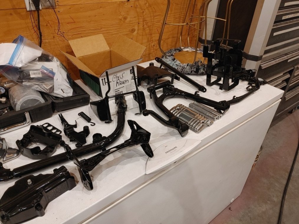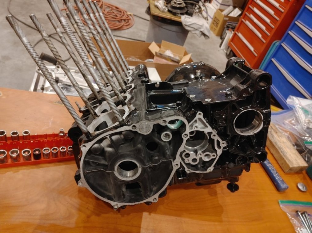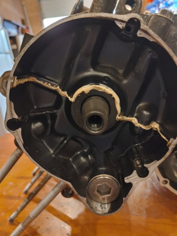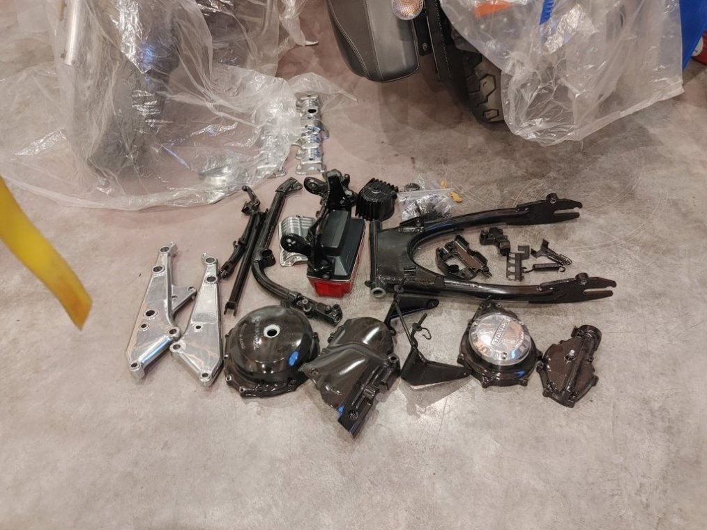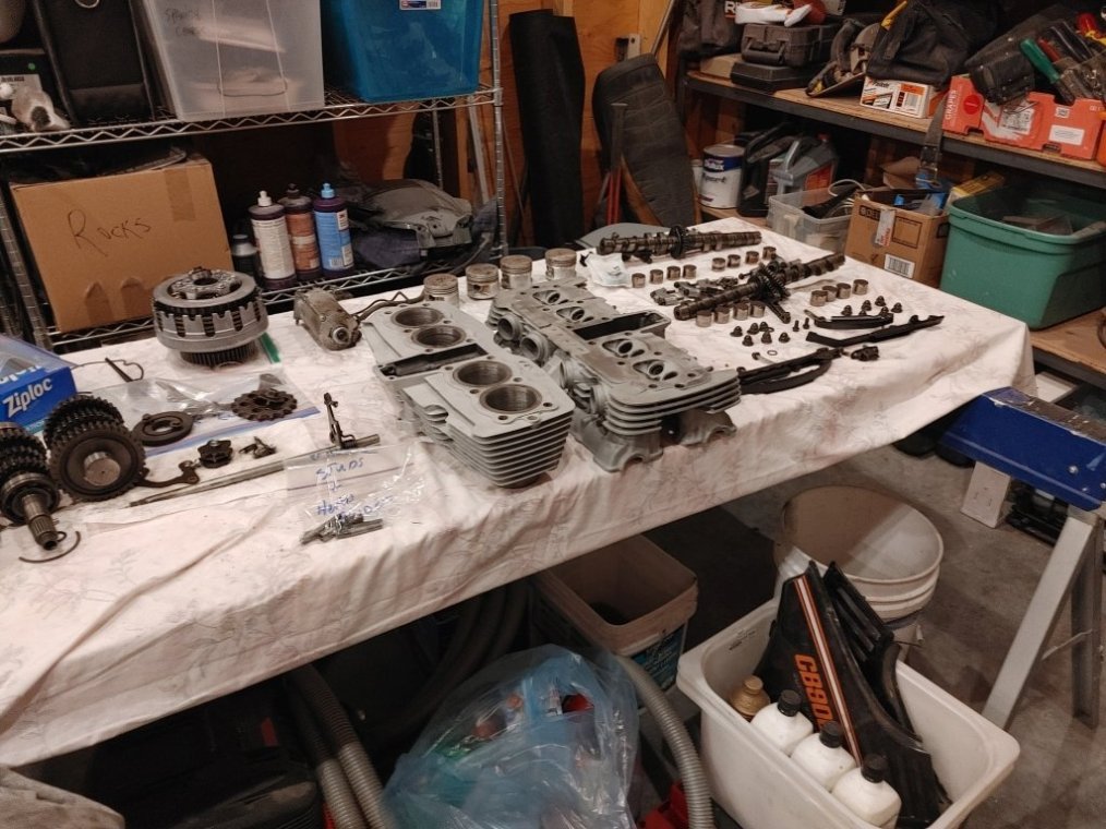 It was a mess and covered in corrosion and rust, I had to strip it down completely to nothing and work all the rusted parts back to life. Somebody had used a heavy sealer on the engine casing as you can see on the picture but there is a good picture of why it is a good idea to have an oil filter screen in the bottom of the engine. I just received the decal pack finally so after I polish the clear on the black I will get the decals on and then put another 3 coats of clear on and then wet sand and polish paint. Should look quite good when it is finished. Am hoping that by the end of June I should have it fired up for the first time in 30 plus years..... Everything inside is new so it will be like breaking in a new bike all over again. I Cerakoted the cylinders and the head which should give me 1800 degrees of protection on the finish. Thanks Chris -