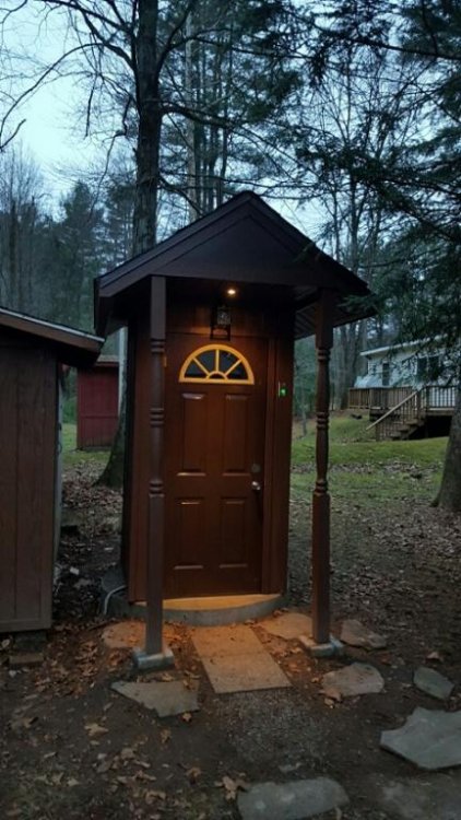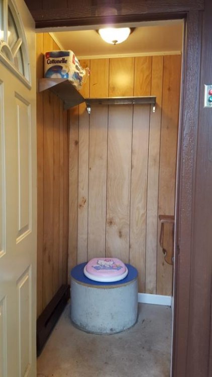 That's actually my niece. The cooks are me (yellow smiley pants) and my older brother (far right). Outhouse is heated and custom ventilated. Absolutely no odor. I used a small combustion blower off a rooftop hvac unit to draw air in through the seat, so NOTHING escapes into outhouse,....all stinky is blown up and away. Heck, folks may want to hang out in there.