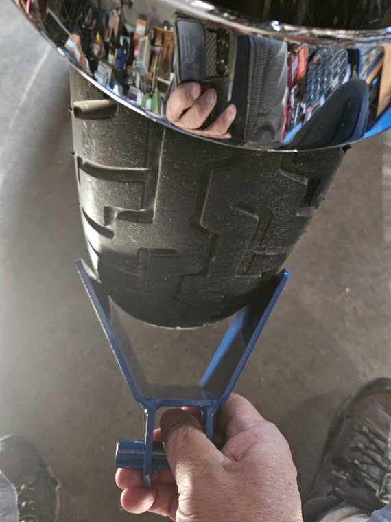 First thing @Marcarlaasked was "where's your buddy Ben?" Said probably home! What I'm messaging for is you said you had a bike stand. Is yours from Princess Auto? If yes and looks like my pictures What holes and position do you have yours set?