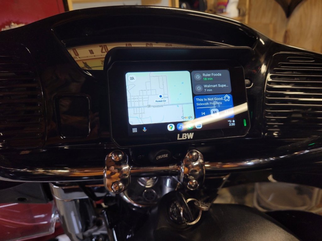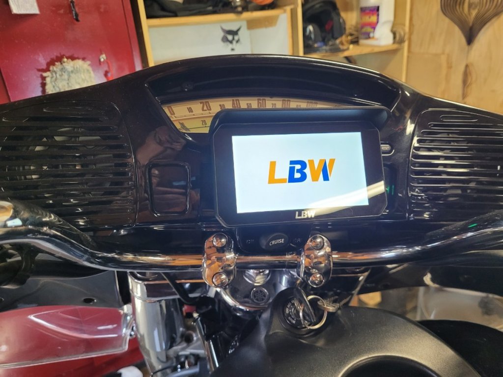 My '10 has been on the lift stand for the last week or so. Got new tires (Shinko 777's) and while it was on the stand I added a fuse block in the fairing, removed the cassette player, cb and stereo and replaced it with an LBE-Carplay-02 unit with gps & bluetooth. In place of the stock controller is a control and amp by Memphis Audio. The new unit also has front and rear (recording) cameras too. Almost forgot... the 1.5" handlebar riser.