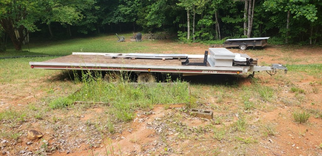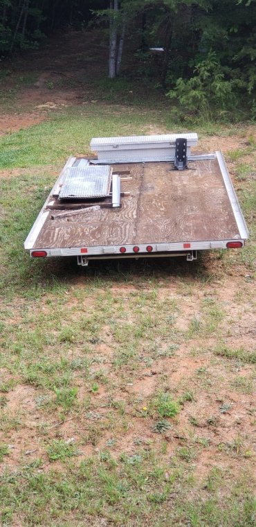 Here is my aluminum sled trailer that I have setup to haul both my 2 wheel RSV & my wifes Hannigan RSV at the same time. The trailer is 21 foot x 101 inches wide. Hauls both with room to spare. The only downside to this trailer is the deck height, I have to raise the nose of the trailer to reduce the breakover angle of the ramp or risk high centering the bikes when loading or unloading. I do this in a number of ways. 1) use the tongue jack. 2) run the rear wheels of the tow vehicle up on ramps. 3) back up to a raised section of ground to reduce the ramp angle.