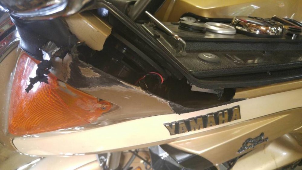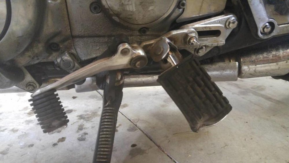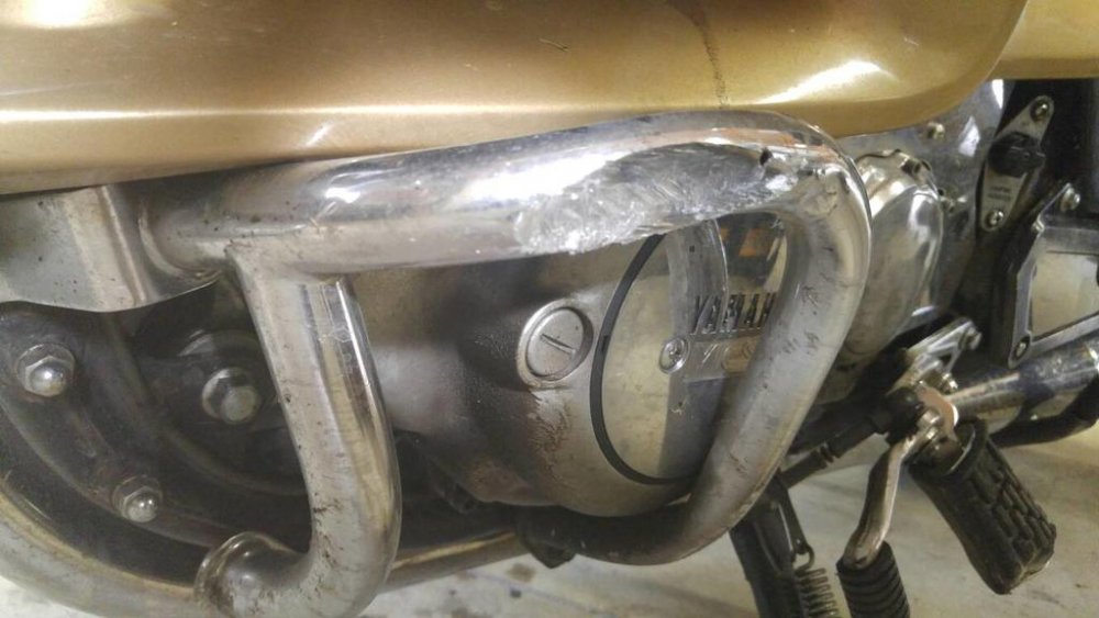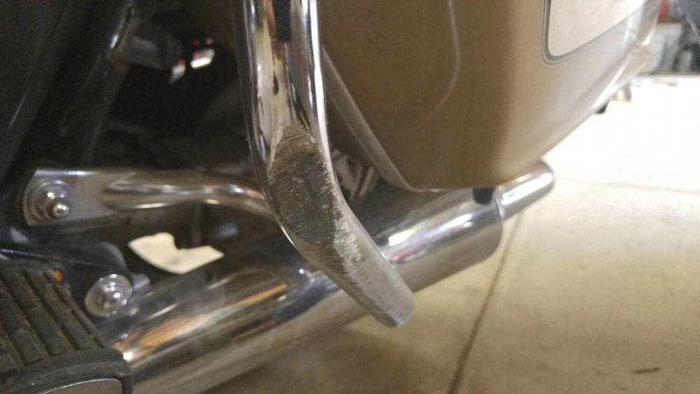 Well after 6 years of riding to work in the dark and a couple near missed it finally happened. Tuesday morning I saw one cross in front of me up the road so I had slowed down to about 25mph looking for more. Then the next thing is I'm down off the left side. Didn't see the deer, didn't feel it. The rest was slow motion. Slide, roll, slide, roll, stop. The whole time I can see the bike sliding along next to me sparks flying off the crash bars. I layed there for a split second assessing my injury situation. I knew I lost some skin on my knees and left arm. Everything else ok. The bike had stalled but was laying on it side lights on radio playing. This was 4:45am and not a car in sight, not even a headlight. I decided to pick the bike up and assess the damage. Left footpeg and shifter bent pretty bad but functional. So I jumped on, got it started and rode the remaining six miles to work. Called the boss and told him I was heading to emergency. Bottom line... Road rash on both knees and a pretty good spot on my left arm plus a sprained foot. Really lucky. Jacket was a lifesaver. Helmet doesn't have a mark on it. (And yes, I was wearing it)