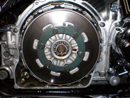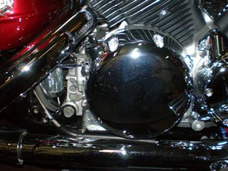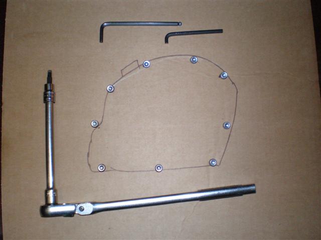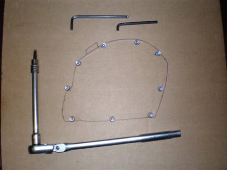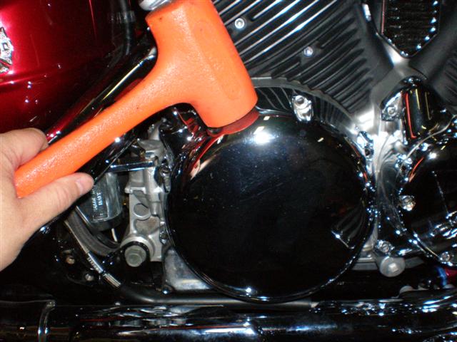 Next you need to gently remove the cover. I did not need to drop any of the oil out of the engine. Although it is a wet clutch, when the engine is not running there is very little oil in the clutch area. Gently tap the cover with a dead blow hammer or something that will not mark your chrome. Remove the cover and clean the old gasket off the cover and surfaces on the block of the engine.