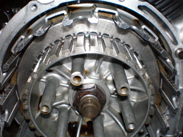 You now need to remove the pressure plate. All you need to do is lift it off. After you do this, remove all the friction discs and steel plates from the clutch basket.