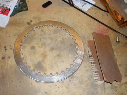 Next you will need to prepare the steel plates to be reinstalled. At the recommendation of PCW Racing, I sanded the discs lightly in a crosshatch pattern so that the clutch has better grip. You can also bead blast them lightly as well.
