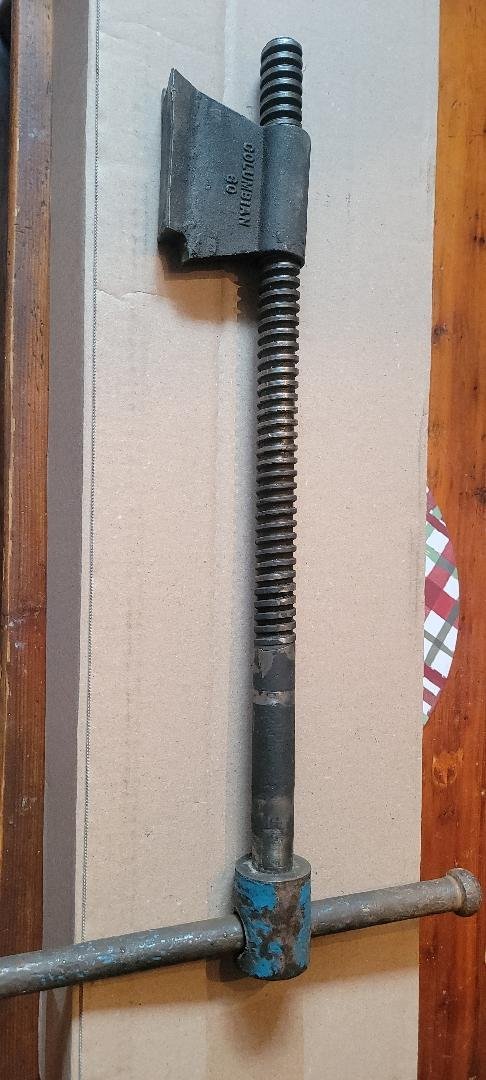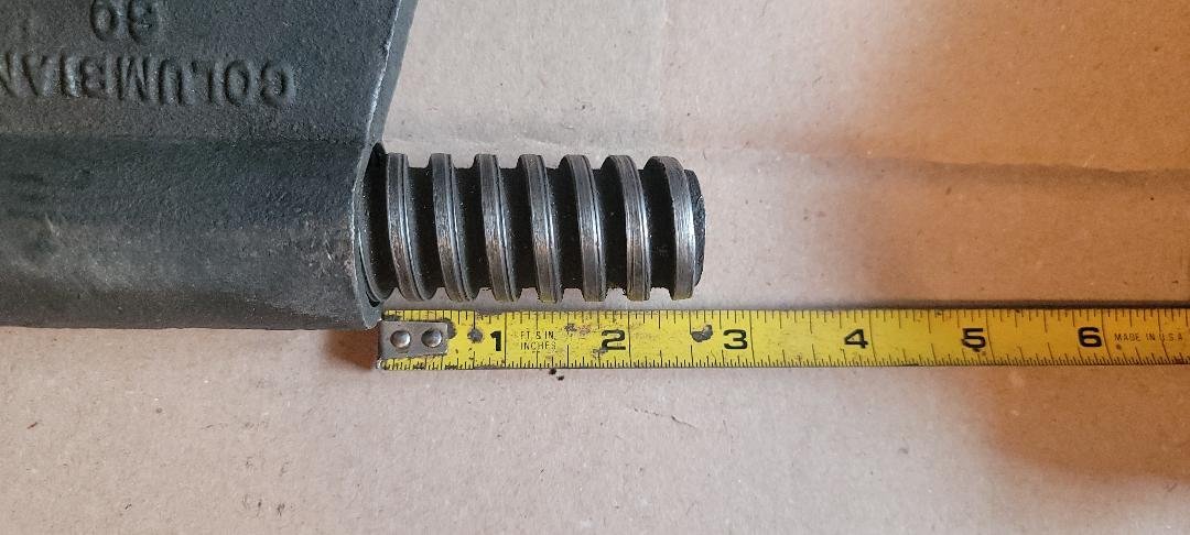 Weird one. I've a very heavy, very large old Columbia vise that I've come across. At OSU, one of their shops was throwing out this old Columbia vise because the threads on the ?nut? were stripped. I've found that they're ACME threads and as I measure the diameter of the rod I get 1 1/8" diameter and count 4 threads per inch. I can repair this by finding a coupling nut that will thread onto the rod, cut off the part that's stripped and weld a coupling nut in it's place. The problem is that I only find 1 1/4" or 1" nuts offered with the 4 threads per inch. 1 1/8" nuts are available in 5 threads per inch only. I wonder if this is actually a 1 1/4 rod that I'm looking at. I haven't taken a micrometer to it, but as it sits it clearly measures 1 1/8" and it sure looks like 4 TPI. I'm measuring at the end and the threads don't appear worn at this point on the rod. Should I expect this rod that measures 1 1/8" is sized small to accommodate the loose fit desired for a vise?