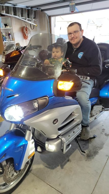 Ladies and gentlemen, at a ripe old age of 32 (soon to be 33 in May), I must admit I'm feeling my age somewhat... We took a trip to Kansas City on Saturday and pulled the trigger on this little beauty! She's a 2012 GL1800 Comfort/Audio. It was advertised as ABS but I don't believe it actually has ABS equipped. Its got 59,000 miles and we picked it up for $8,500. I still have the 1988 Yamaha Venture. I've had that bike for 12 years, bought it with 22,300 miles and it now has 112,000 miles. I started to feel it was getting sort of long in the tooth, and since having the carbs out again this winter and having it idle better than it ever has, I finally cussed when it started idling not perfect (still idles good, just not perfect) and decided it was time for an upgrade. I've been around Goldwings my whole life and have ridden several 1800s. The original goal was to get a 2021 + Goldwing, but after sitting and thinking on it, financially it makes more sense to stay with the last generation. Plus I love this color. I think its beautiful. The sound system on this 2012 is better than the 6th Gen Goldwings that I have ridden. I now need to go through it, change all the fluids, add some highway pegs and maybe look at new windshield. We live about 200 miles from Kansas City and I rode it home in 48 degree weather. Those heated grips and seat make a huge difference. I'm not sure if I'm going to keep the Venture or not. Its been a great bike for me all these years, but I've done almost all the kinds of different maintenance and I'm starting to feel as though I'd like to find another, smaller bike to maybe start to restore. Anyway! Safe travels everyone!