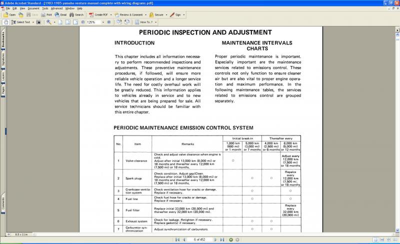Attached are my scans from the various manuals I own. It appears that the MKI have a more frequent valve inspection/adjustment. Perhaps, Yamaha decided after three years that the frequent valve inspections were unneeded?
