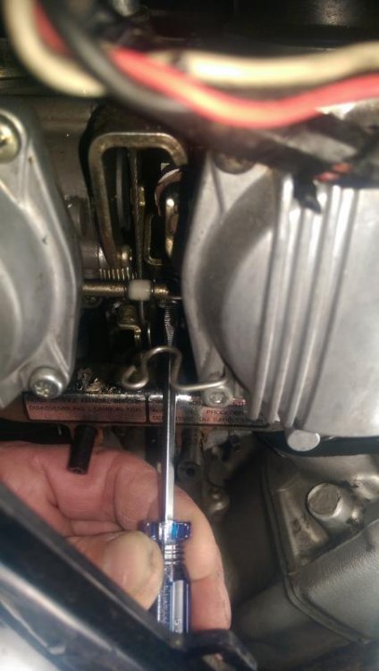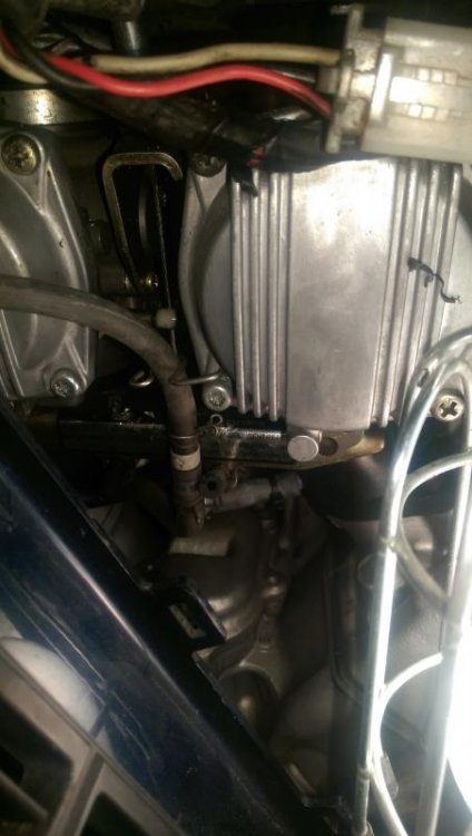 Patch Posted May 9, 2015 #48 Posted May 9, 2015 Ok. Have all new plugs, all firing. no problems. Cant find linkage screw, as mentioned above. Looked into manual, no" linkage screw to adjust," (all other jets and screws, none as linkage). Has a tear down view of carbs. Found pilot screw and jet. No problems with panel lights, all off and everything running ok, except carbs. Still cant ride bike, cause of shoulder. kneeling down on the left side of the bike, looking at the carb caps, move the small black vacuum tube by pulling it forward and out of the way- cast your eye past the stainless U-shaped clip, just to the right of the cable hub, you see a slotted screw! That is the screw you need to turn, 1 turn, then start the engine, let us know if there is a difference in the RPM and then the temp. See the pictures below: