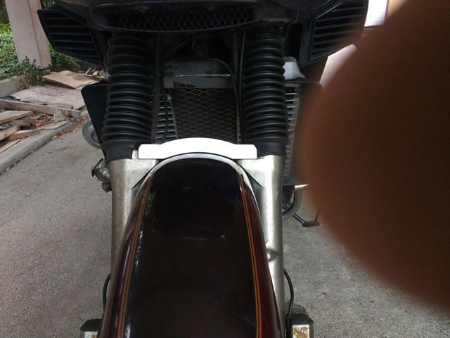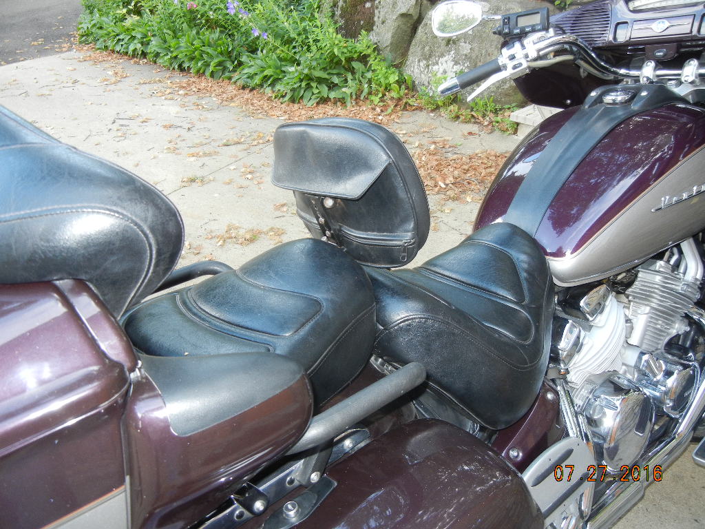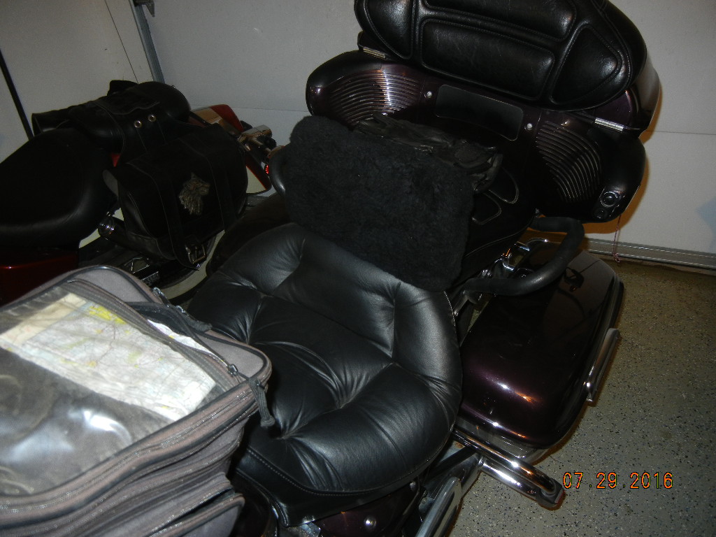 gggGary Posted July 29, 2016 Author #66 Posted July 29, 2016 I bought a Utopia backrest from a member but it didn't fit my 6'3" frame. So I took it off and built my own yesterday. I had a memory foam sheepskin back pad from a different bike I put on a backing I made. Supports are 1" X 3/16" from the hardware store. Not much to it and after 100 miles last night 2 thumbs up! With my long frame and +2 ape index the stock handle bars are right where they should be. I have 3 "stock" seats now and am deciding which to keep. The Utopia The one I made the pad has a cross bar with recesses the uprights fit into.