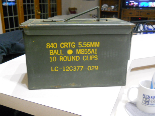 Check this out you guys!! I just scarfed up 1000 rounds of 556 tracer's.. I purpose built my AR15 with the 1:7 twist so it matches the Military twist specifically built for keeping the heavier weight steel cored ammo mixed with a tad of tracers. Much to my surprise (and Tippy's too) instead of coming in plastic bags like my bulk 45 ammo comes in, it came in this AWESOME genuine U.S. Army issued Ammo Can still with it's original Army markings = DEFINITELY MAN CAVE MATERIAL BROTHERS!!!:dancefool::dancefool::dancefool::dancefool::dancefool::dancefool: