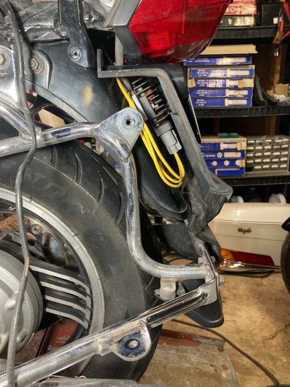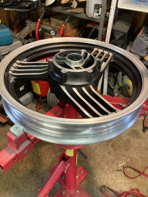 Theoretically, I'll be able to pop the front tire into the chock, run some straps from the handlebars to the chock's horizontal brace (which i intend to lengthen), and lift the rear high enough with the scissor jack to remove the rear wheel.