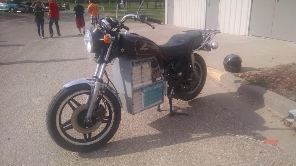 Here is a bike converted for electric power I saw at a local University car show. Not real pretty, but the owner said it handled fairly well.
