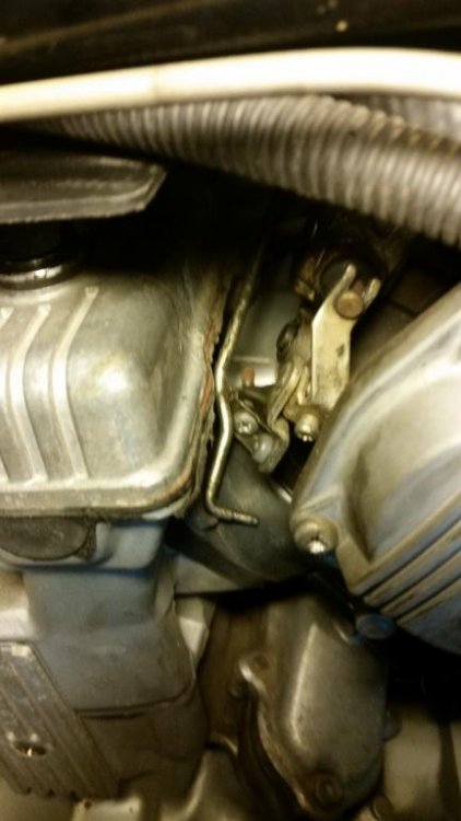 I pulled the side cover this morning in preparation to pulling plugs for diagnosis and found the choke linkage for the right bank disconnected (picture>) (Doncha love learning about stuff the previous owner did?) I reconnected and then bent it very slightly so it'd stay where I put it. Then I took Blu out for test ride and... MUCH BETTER but still not the complete fix: - Low RPM still runs on mostly 3 cylinders and hesitates in idling parking lot maneuvers. - "Kicks in" much more smoothly without the popcorn noises in the exhaust at about 3200RPM - Still backfires under deceleration right at 4500RPM: Set your watch by it! I do NOT understand why not having choke on the right bank would make a difference in the way the bike runs WITH THE CHOKE OFF. The linkage "engages" the choke forcing a richer starting and warmup mix. With the linkage disconnected, the choke fails in the open or "disengaged" position and no vacuum or throttle condition should be able to pull it closed. What the Heck? Is there an idle enrichment circuit that's actuated by choke position? Yes, I'm a newbie. Yes, I need to read more about these bikes. Yes, I haven't dealt with carbs since Throttle Body Injection came out and not much even before that. I invite comments and I still plan to get into those plugs and see what's up with them... after I take a little ride... Too nice a day to twist wrenches. I've got all Winter (in Michigan) to do that nasty tear-down and repair stuff. Thanks!- 13 replies