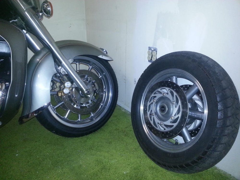 That is where I started my research. I planned to do the 130 front on a stock wheel but came across a deal on the stratoliner wheel that is so pretty. What tire do you have on there? Michelin Pilot Active 130/70-18 Was it plug a play or was there dome "fiddling" Fully compatible with the correct size wheel bearings Any comments on handling before and after? Like most people who've gone to a 130 vs the stock 150 front, lighter steering feel Will the existing rotors bolt on that wheel? I am not sure, but I believe the rotors are compatible. The bolt spacing and outer diameter are the same but the inner diameter I do not know. -