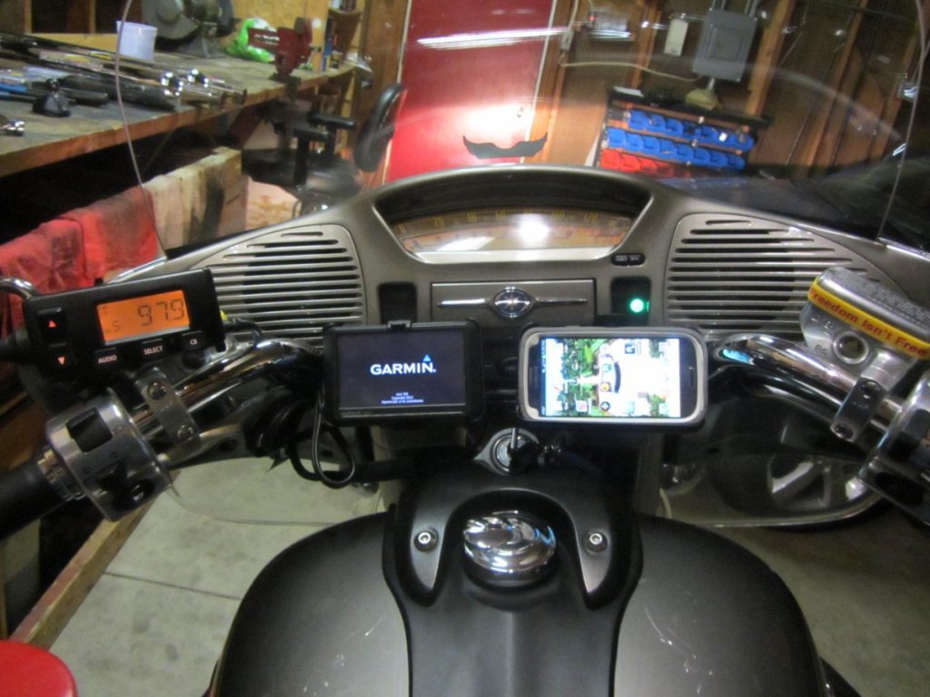 I originally had the u-bolt style mounts down at the bottom of the handlebars next to the risers, but it was awkward to access the ignition switch. I later replaced them with Ram clutch top mounts. The right brake-master typically has a Ram X-Mount to hold my phone and the right clutch-master has the Garmin Zumo 660 Mount that is permanently tied into the bike. https://www.amazon.com/dp/B003CMNXIO/ref=cm_sw_em_r_mt_dp_065GV8G554SE5MFV607D