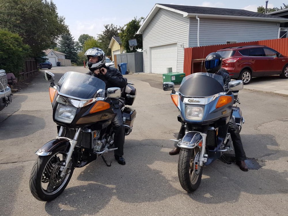 Thought I’d share a piece of our trip last fall,. Here is how it started. One Sunday afternoon talking with my girlfriend, mentioning that it would be nice to plan a week trip up through the Rockies. Listening to her reply, suddenly I flashed back to days of well let’s say, before dating. So while sitting there still listening to very sound reasoning these words just kind of snuck out “well if you aren’t coming” reaching for my phone I dialed up SK. “OH-NO-SK”. SK. And I have been friends since childhood. I started traveling the country and beyond in 79, I often said I’d like to take a tour with him and show him just how beautiful it is out there. I often spoke of the unique bond of man on his machine twisting down the highways surrounded by the undeveloped parts of this country! SK. I said, let’s find you a bike it’s time for that road trip to which he replied OK! A week later we picked up an 86 Venture mileage unknown then spent the next 3 weeks making it road worthy spending every spare minute on it. The worst of it seemed to be the carbs! Everything else was well obvious, and like SK. kept reminding me of, “ she has new tires” . Eventually I did get those carbs running after finding the gaskets for the jet housings. This carb issue must of been going on for a long time as, the intakes ring seals very very beat-up! Then it was time to take a quick run through mine and low and behold, she wouldn’t fire up? Hmmm Pushed into the shop and later that night she decided she was coming on the trip. It took us a day & 1/2 to pack then headed out through the smoke, at times driving through field blazing on either side of HW1