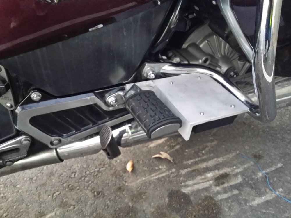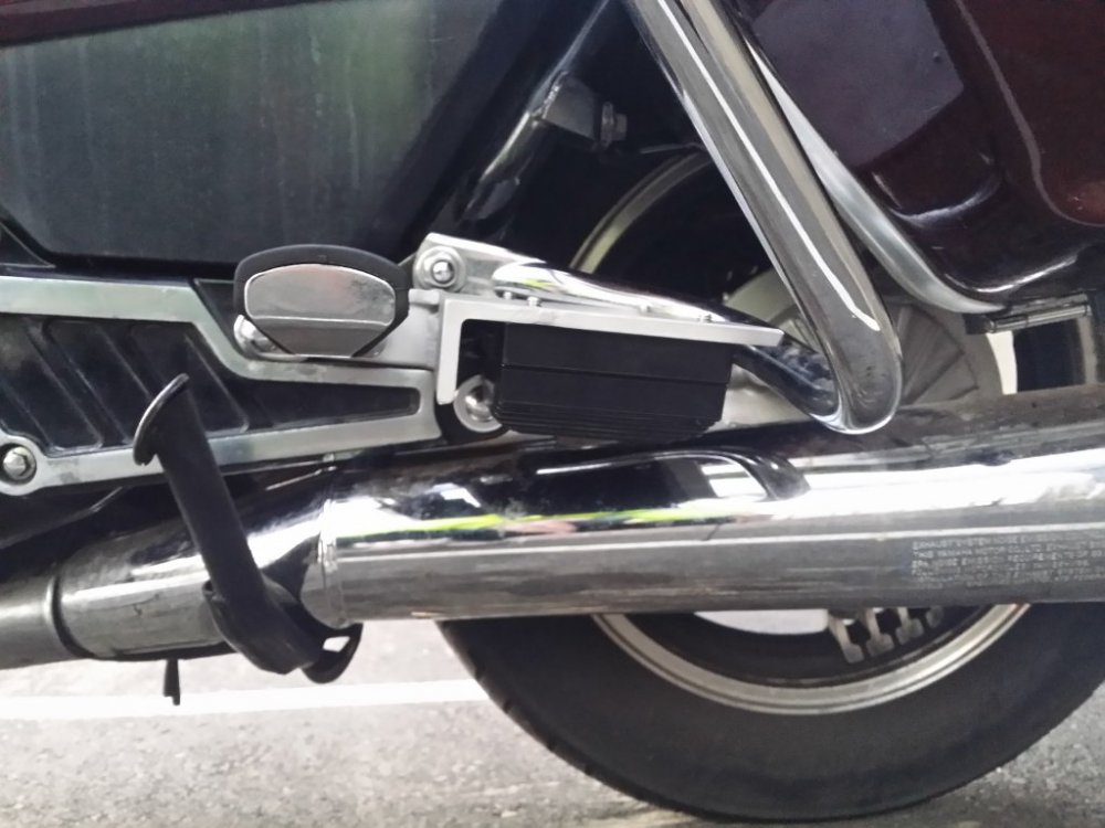 Series vs mosfet vs shunt voltages on regulatorsiphlue replied to iphlue's topic in General Tech Talk Finally got the CE605 installed last weekend an been riding it to work finally the last two days. The CE605 has made a BIG difference in voltage readings. I have NO trouble getting the expected 14.4 volts at almost any rpm but idle. Even then its almost 13 volts and comes up quick to 14 volts @ 800 rpm. So, the wanna-be r/r from amazon that is NOT a true Shindengen just doesn't cut it. I'm very happy with these readings and are what I expected in the first place. I had a hell of a time figuring out where to mount this thing. Finally designed a bracket to take advantage of the extra rear footpeg bolt hole. Here's a few shots of the prototype bracket. I'll get it powder coated black soon after I make a version two that will hide the bolts.