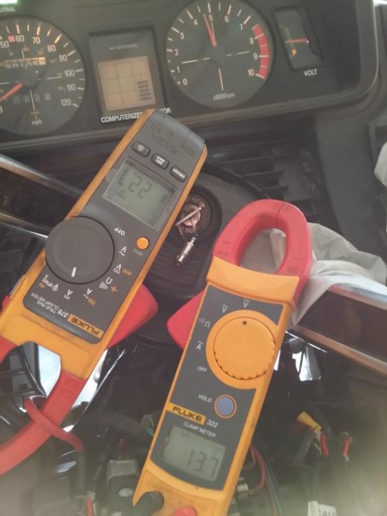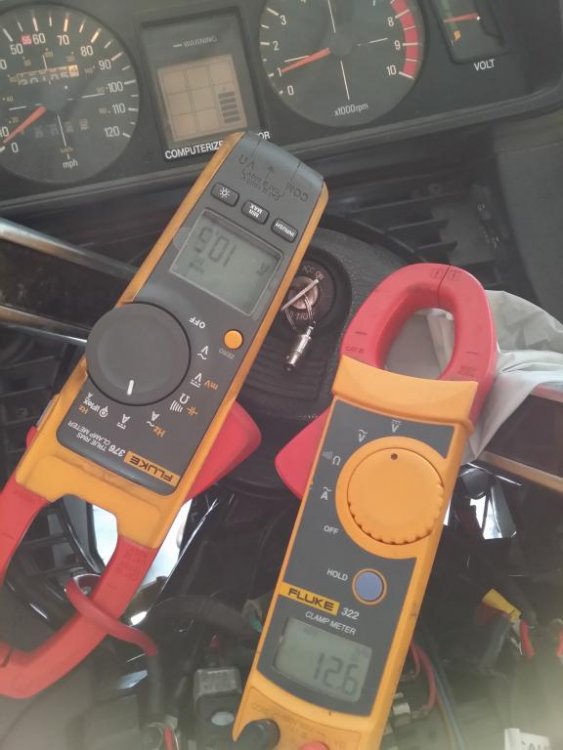 Series vs mosfet vs shunt voltages on regulatorsiphlue replied to iphlue's topic in General Tech Talk After your comments, I was motivated to retake some readings and took pictures for myself so that my memory wouldn't trick me... After some warm up I measured the 3 phases: idle 14-16 volts fluctuating 4000rpm ~90 volts 4600 rpm ~100 volts 5000 (a bit over?) as much as 118 volts Ohms to ground - infinite phase to phase .5 ohms x 3 ways With headlights and fan on: Idle - 10.6A @ 12.6V (this goes down lower after a while) 4600 rpm - 22.7A @ 13.7V (and creeping up ever so slowly) With Headlight and tail fuses pulled and fan off: Idle - 9.1A @ 13.0V 4600 rpm 18.6A @ 14.0 volts OK, so what do you think of these readings?