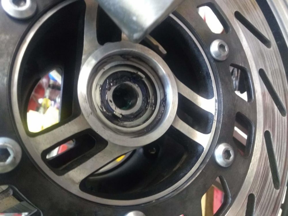 I may have read before what I'm about to post here on our wonderful forum or elsewhere, but regardless I think it needs repeating. I wish I took pics yesterday while I performed this service! Based on what I have read here on the forum to remove the wheel bearings start on the right bearing (the one opposite of the speedo mechanism) you can use a drift and a hammer. Slide the spacer (located between the left and right bearing) away from the bearing you are removing and gently hammer (you'll need a drift with a sharp corner on the business end to catch the edge of the inner ace) the back side of the bearing you are removing at the inner most circumference of the bearing on the far side of the spacer. Then you can use a socket whose diameter is no less than that of the outside diameter of the spacer) and extension with your hammer against the spacer to drive the other bearing out from the same side the first bearing was removed from. I don't like the first part of the above method because 1) I don't have a drift long enough to reach, and 2) I don't have a square drift... I heated the hub around the bearing to expand the aluminum to allow the use of a Pilot Bearing Puller (sometimes called a Blind Hole Bearing Puller; you can borrow these at the local Auto Parts stores, I got mine from NAPA) and the bearing came out quick and easy! Then, I turned the wheel around, applied a squirt of WD-40 (I don't know if it really penetrated (helped) or not but I did it anyway) Then using my trusty Lisle bearing/seal driver set and 3/8" X 8" socket extension with the Legacy Force Applier (Hammer, w/short handle, 2.5 Lbs.) and with some light tapping drove the other bearing from it's home. To install the All Balls Racing Bearings, I reversed the process, BUT I left a LIGHT coating of grease inside and outside the spacer and shield assembly and each bearing's home for 2 reasons, the bearing and spacer are made of steel, the hub is made of aluminum, a sure recipe for corrosion should any humidity or water get in there. I saw NO CORROSION in the bearing homes but a little bit of grease is cheap rust insurance. The second reason I applied grease to the bearing home and the outer circumference of the bearing is to help the bearing move in the very tight home it sits in, I bet the machinists here on the forum would call the hole and bearing clearance an "Interference Fit" (if it's not it's AWFULLY CLOSE to one!) I installed the last bearing first using the tried and true hammer/driver method and (now this is important!) Next I installed the second bearing using grease and the aforementioned bearing driver set and hammer. TIP: Never install a bearing (roller or ball, sealed or not) by pushing or pulling on the inner race; always use the OUTER race or a bearing driver disk. The disk should be no smaller that the inner diameter of the outer race. Unless you're removing the old bearing; the mission there is to get the old bearing (you won't be reusing the old bearing) OUT, just don't screw up it's home! Use a LITTLE heat (especially on aluminum as it has a low melting temp.) to expand the housing hosting the bearing, the aluminum will heat faster than the steel bearing inside it. The bearing will come "right out" with minimum force. I suppose you should use heat to install the bearing too, it's prolly the preferred method....The Yamaha manual doesn't address HOW to remove/install the bearing, it just tells you to do it. Using heat Is one of those things that's "good shop practice" So on the rear wheel I will use the heat to install as well as remove the bearings. In my 36 years maintaining aircraft, cars/trucks and ships I personally have never seen heat used to install a bearing. From https://www.engineeringtoolbox.com/melting-temperature-metals-d_860.html [TABLE=class: medium] [TR] [TD][TABLE=class: medium] [TR] [TD]Iron, Gray Cast[/TD] [TD] 1127 - 1204c[/TD] [TD] 2060f - 2200f[/TD] [/TR] [/TABLE] [TABLE=class: medium] [TR] [TD]Magnesium 650c 1200f[/TD] [TD][/TD] [TD][/TD] [/TR] [/TABLE] [/TD] [/TR] [TR] [TD][TABLE=class: medium] [TR] [TD]Magnesium Alloy[/TD] [TD] 349 - 649c[/TD] [TD] 660 - 1200f (Ain't much is it?) The Oil Filter Cover is made of Magnesium.[/TD] [/TR] [/TABLE] [/TD] [TD][/TD] [TD][/TD] [/TR] [/TABLE] [TABLE=class: medium] [TR] [TD]Iron, Gray Cast[/TD] [TD] 1127c - 1204c [/TD] [TD] 2060f - 2200f[/TD] [/TR] [/TABLE] [TABLE=class: medium] [TR] [TD]Aluminum[/TD] [TD] 660c[/TD] [TD] 1220f (Ain't much is it?) Beer Cans?[/TD] [/TR] [/TABLE] [TABLE=class: medium] [TR] [TD]Aluminum Alloy[/TD] [TD] 463 - 671c[/TD] [TD] 865f - 1240f (For our purposes it's about the same as Non-Alloy Aluminum)[/TD] [/TR] [/TABLE]