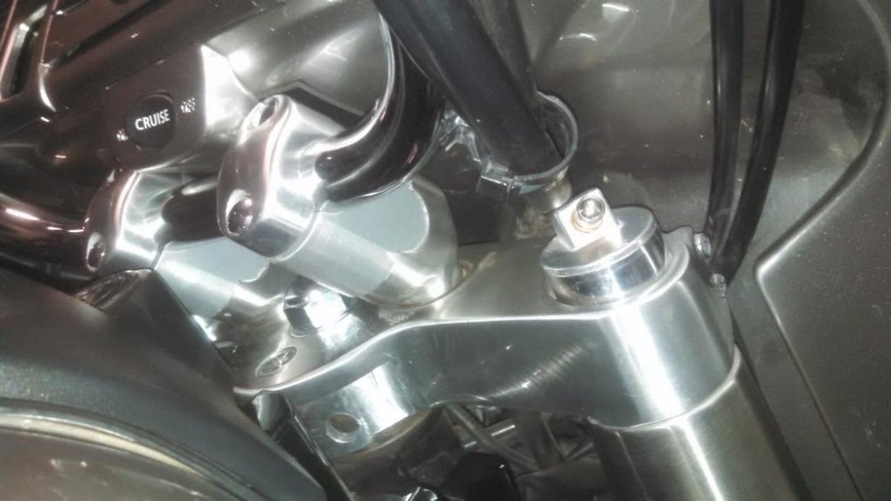 Update 8/15/15: LED's instead of reflectors - check Added HD brake/turn lights - check Done most of the maintenance so I have a baseline - check New tires - check Ignition switch relay - check Replaced left front rotor - check New Clearview - check Tilted tour pack a tad - check - but wifey wants more...hmmm. Guess I'll be tilting tour pack more! Reminder, need brace underneath. This week: Lowered front end 3/4 inch. Took long ride this morning...141 miles. Freeway and back roads. The front end feels better. Stable (got up to 90mph) but easier to handle at low speeds. Can still release bars at speed and bike tracks straight. With Pirelli tire pressures at 38F/42R cold, the bike is mucho better than when I first got it. Huge difference - tires, air pressure and lowering the front end does to the low speed handling. Almost like adding power steering to the scoot! So happy with the effort it took to do that free mod. And yes, it was an effort...mostly with the inner fairing. Holding it away with towels then hanging the bars from the ceiling was important too. Once all that was out of the way, the rest was easy. Next time I won't use a magic market...a piece of masking tape would give a cleaner edge to measure from. Only one issue with fairing upon completion: Seems with the Baron's 1 1/2 inch riser extensions...the risers come very close to hitting the inner fairing. I ended up using a 1/8th inch strip of hard rubber stuck between the inner fairing and the riser. Worked...no vibration in bars and the fairing and risers are solid together. For some reason, I don't have the space that @djh3 has...and he has basically same setup. Next? Don't know...but only another month before we hit our long riding season here in Arizona...so not much time left for maintenance!! david