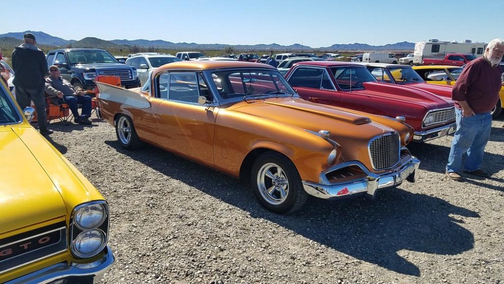 I did the oil change to Quicksilver 20-50 synthetic on the RSV 3 weeks ago. New filter. It's a quieter ride now and real easy shifting. Took it up to Phoenix and she ran nice all the way at 80mph. Last weekend Mark on his HD Ultra and I on the RSV took off for a long run to the west coast of Arizona for a chili cook off. Rode out I-10 almost to Quartzite then headed northeast to Salome where the cook off was. I-10 was loaded with truckers and we had to keep up the pace around 75 to 80 despite a high head wind. Got 31mpg's on both the HD and the RSV. Lots of wind. The 2 lanes home up to Wickenburg then back to Phoenix were nice....Bike rode fine, engine was quieter than normal...so I think I'm going to like the Quicksilver. And yea...the clutch is still slipping a touch in 4th or 5th when I roll on hard. So just waiting for some time to order the kit. Think I'll replace everything. Wouldn't hurt and then I don't have to think about it for the rest of my riding life! Some pics of the cars there for the show and the chili booths...I forgot to get pics of the bikes sitting in the sun.... But it was cool out...low 50's during the day. We have had some cold fronts come through...one right after another. This week in Green Valley I will be in the 50's with below freezing temps at night. Expecting snow again by the end of the week....really? "Go to Arizona they said. No snow they said." So not much riding this past month. -