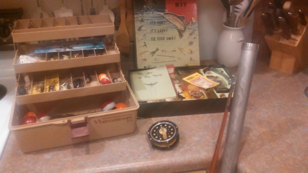 Geesh..and here I've been wondering what to do with my fly fishing rod and reel from the early 60's. Got an old fly making kit from back then (never used) and a tackle box full of "stuff". My uncle who got me into fishing big time died early and left me with no one to go with back in high school. Stuff has been carried around for 50 plus years... Sorry for the lousy pics but the phone camera used was on it's last legs from to many dropsies! No idea what this stuff is worth...if anything.... But nice to know there are some experts here that can help! -