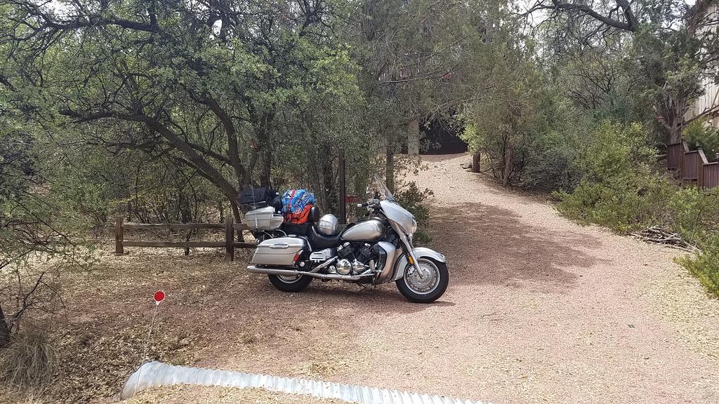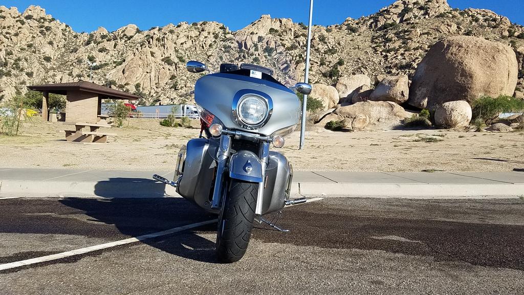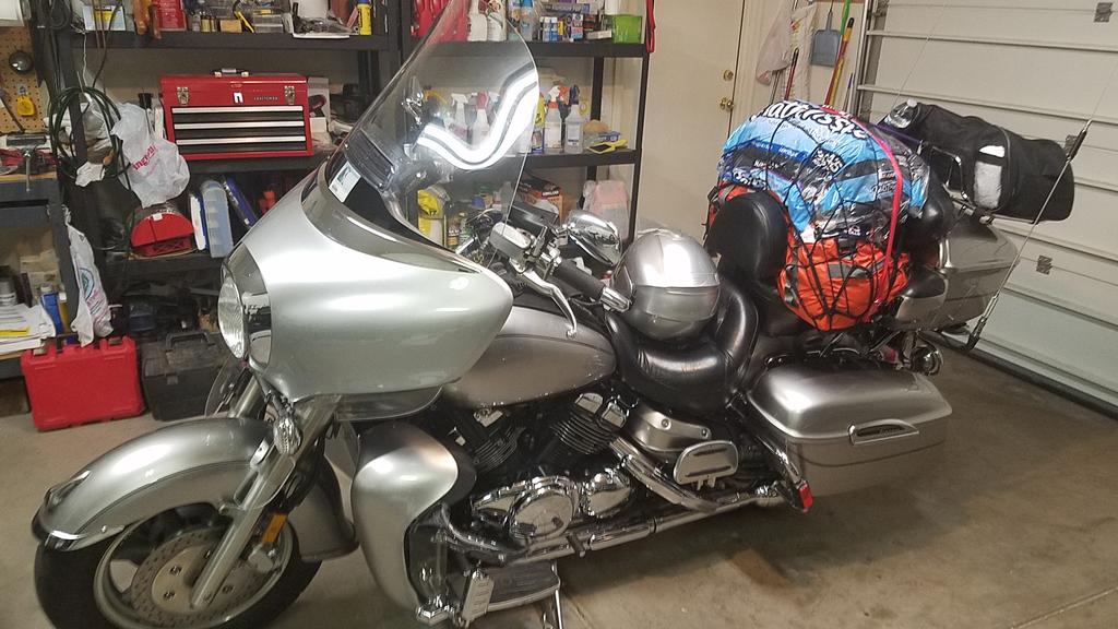 Well...since the Pucster mentioned all the "stuff" I packed...thought I would start with that....(you can blame him if this read is to long!) Grins. 2018 MD Trip. Or attempt anyway... I had three objectives: 1. Make this trip for myself. 2. Meet members on the way. 3: Enjoy meeting everyone at MD. Most excellent trip. Although I didn't make it to MD, I had a very good trip. Visited long time friends and made new ones! Cowpuc and I were watching the weather and at the time he and Tippy decided to head south to visit family instead of coming to MD, I decided the thunderstorms forecast for between Ann Harbor and Toledo were not what I wanted to experience! I don't mind the rain but those midwest thunderstorms...nope. So they headed south and I caught the ferry west to Milwaukee, hoping to meet up with FlyingFool. Left in warm sunshine, arrived in freezing windy cold! But I'm getting ahead of myself. I do get a kick out of packing. I haven't gone across country since 1969...when I went from New Hampshire to Arizona on a Yamaha YDS-6C. Being young and "stoopid", I didn't know I should pack for emergencies...I just grabbed the duffle bag and went. But this time I wanted to pack for bear, as I knew if I didn't have it...I would need it! So...I did...and thankfully...didn't need the stuff. Cockpit: 1-Controller. Set in "Aux" mode...listened to XM and GPS. 2: XM 3: Garmin 490. Has aux input (for XM), line output... so it plugged right into the "Y" cable inside the fairing. Tank BIB: Gas cap cover by Nanci. Kept the glare down. Thanks, Nanci!! http://www.acehighleathers.com/ 4: Audio cord with Edsets adapter for ear buds. Pockets held GPS cover, sunglasses, gum and whatever... Left Saddlebag: 5: Tent poles (kept thinking of Yammer - wish I could have met him) 6: Stator (I've got over 60K on original) 7: Gloves 8: Guard braces to be installed at MD. 9: Shock pump, extension mirror 10: Fuel pump 11: spare plastic.Ground cover or David cover 12: Slime kit with pump 13: Jump start battery 14: Charger 15: spare web cord and tent cords 16: Head lamp Tour Pack: 17: 1st Aid kit 18: sheepskin for butt. (didn't help) 19: Stator gaskets 20: Tire plug kit 21: TP (cat shreaded one roll) 22: Snack bag Sneakers - not shown. Very light packed in bag. ResMed Cpap Mini - Not shown Right Saddlebag: 23: Spare headlight bulb 24: bag with points, plugs, fuses, etc. 25: 1989 VR tool kit (cause it works!) 26: Stand pad 27: Fuel hose 28: Towels and rags 29: Gloves 30: Tool bag - sockets and wrenches/butane soldering pencil and electrical stuff. 31: Wet/dry bags for windshield Pillion Seat: 32: Clothes bag. Went above the camping bag. Clothes, meds, vitamins, etc. 33: Camp bag- tent, pad, rain fly, stakes, sleeping bag, pillow, etc. Tour Pack rack: 34: Blanket, Bike cover, rain gear (Froggs Toggs), web straps and tie down. Plus, anything else I picked up like tour brochures, etc... So did I over pack? Yea...no doubt. All it cost me was MPG's! Back to the road...Although I had the camping gear...I decided that I needed to add to my Best Western points....so I was planning one day at a time based on finding a room with BW. It was worth it for me to have a hot shower and decent, free breakfast. BTW, I wore Bohn armor leggings under my jeans. Got the lightweight summer mesh. Worked very well. It was warmer but I didn't even notice them while walking or sitting on the scoot. I felt good having them on. Day 1: Left Arizona at 6am on May 23rd. Stopped at Dragoon Rest area on I-10. Love the rocks. Got on rt 70 at Las Cruces, NM and stopped at White Sands. Interesting place! Continued on 70 to Ruidoso. Hoped to meet up with V7Goose, but he never responded to my PM. Hope he's ok. Was concerned about thunderstorms as they built up in that area and were heading east. But lucked out as they stayed ahead of me while I slept. Day 2: Left Ruidoso at 6am. Hadn't gone 4 miles when I saw 3 rather large dead deer still laying in right lane by guardrail. One right after the other. Obviously, the watch for deer signs were valid! Fresh meat...not yet picked up by humans or scavengers. Rode through the panhandle of Texas on way to Amarillo...lots of cows...miles of cows. Whew! Next overnight at Elk City Oklahoma. At Elk City BW, they let me park under the portico as a large storm was coming right at us. Gave me a room with a view of bike. Thankfully, storm split and went around the area... Day 3: Was aiming for Sherwood Arkansas so left early at 6am. Had to delay outside of Oklahoma City on I-40 as 2 lines of storms were converging on Oklahoma City. I managed to slip between them, but was caught just east of downtown in a downpour. Froggs Toggs work. RainX for plastic windshields worked very well...letting water bead up and blow off. But of course, I was stupid and forgot to close the vent on the Clearview, so I was breathing rain until I woke up!The Shinko 777HD tires never felt loose at all during the freeway speeds through Oklahoma City in the downpour. 3 lanes of traffic...I took middle lane and zoomed along with them. Arrived in Sherwood, Arkansas in time for dinner. Hot and muggy. Had the best ribs I've ever eaten in this very small place....I ordered a half rack. The ribs were so big and meaty, I could only eat 3 ribs! Called Smokin Buns...north of Sherwood, AK. Visited with high school friends for 3 days...leaving on Memorial Day to get up to Indianapolis area. Day 4: May 28th My friend had me head NE on rt 167/ rt 67/ rt 412/ eventually connecting with I-55 to head to I-57 to I-70 and Effingham, Missouri. Uneventful ride except almost ran out of gas. There was no gas listed on the GPS for some 40 miles and I had passed up the last as they were about every 8 miles or so. Not this time. Came into this tiny town and ran into Ms. Addies Quick Shop. Restaurant sign and 2 old abandoned pumps. But....to the right was a lady brooming off a new gas pump pad! They had gas. Close call as I was on reserve. Nice people. Locals ate there so next time 