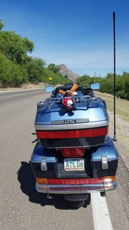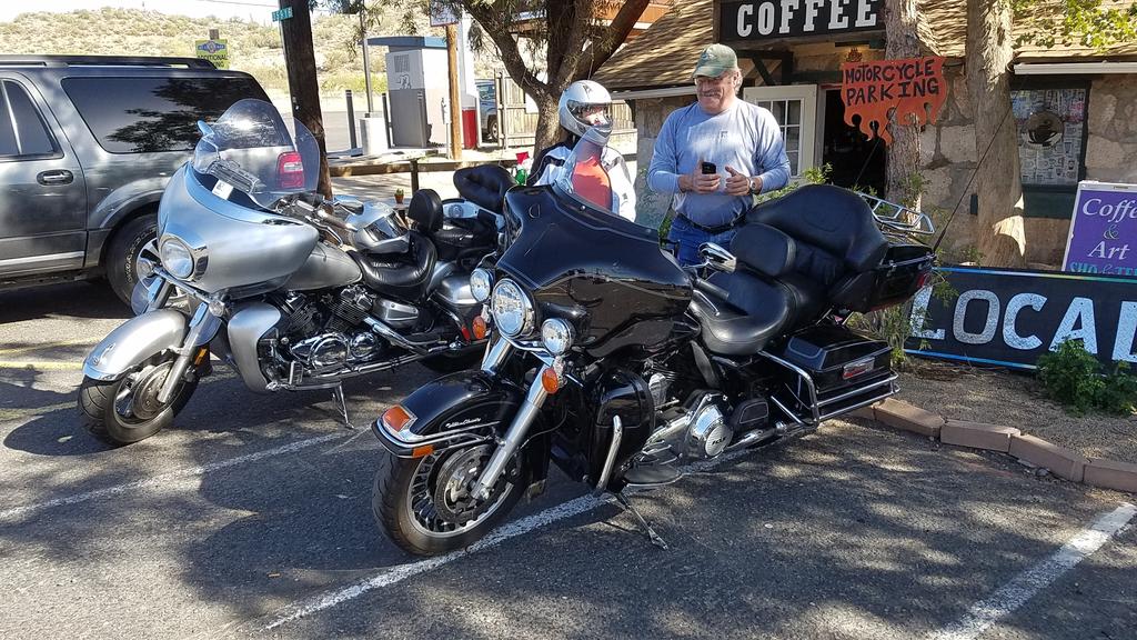 This past Saturday, we took a trip up to Wickenburg for breakfast, then up Yarnell hill and on to Prescott via RT89. Lots of twisties! Stopped briefly at Watson Lake Park. Kinda cool rock formations around the lake. On the way back to Phoenix on I-17, we stopped at two places. First the rest area at Sunset Point. Then on to Rock Springs Cafe...lots of history there. Was a stage coach stop way back when. They also have the "Hogs in Heat" all you can eat days throughout the year. Great BBQ! One of these days I'll get a picture of Pat without her helmet on! Anyway, a good ride. Bike ran very well. 36 mpg's, 2 up, loaded with tools, water, warm clothes and such....from twisties at 20-40mph to interstate at 80mph. We were prepared in case it got chilly up in the hills!