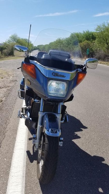 Side panels simply pop off. Held on by three plastic male thingies that force fit into 3 rubber grommets...and one rubber band on the bottom. I don't have a picture but maybe someone does and they can post it here. Brake light switch - simply unplug the connector and test switch with an ohm meter. If the switch is working, then trace the wiring...you are looking for a broken wire. Fuse info is found in the manual. Both the owners manual and the service manual are available in the 1st gen tech section as others have mentioned. They are free and worth their weight in gold on these bikes. I printed out the fuse info when I first got the bike and taped it under the false fuel cover. The main fuse should be to the left of the battery with a spare fuse holder right next to it. As stated...original horns do not have a relay. If someone put a larger horn on then the switch should be energizing a relay and you just have to find where the wires and relay are. I mounted my relay and wiring next to the battery....maybe they sold you the scoot without the horn??? Seat comes off with 2 bolts, one on each side in the middle of the seat underneath as shown on the video. These bikes are very easy to work on...they appear complicated but in reality are far easier than most bikes out there. The 1st gen Ventures, like yours, are almost bullet proof. They also require little maintenance once you get the previous owners issues put to rest as well as clean up the fuel and electrical systems from almost 30 years of possible neglect. My 89 was bone stock when I got her and she ran beautifully and still does. Since then I've added LED lights, a loud horn, and a R6 rear brake caliper for extra rear braking. I've done all the work myself with limited tools, money and time. I've never found the bike to be beyond my limited knowledge and experience and have relied heavily on the talent and knowledge on the forum to help me when I found myself over my head. In other words, take your time and enjoy the experience. Don't shotgun your maintenance...one thing at a time. You will get her where you want her and you will find yourself riding a very fast and nimble sport touring bike you can take anywhere. Thank you for keeping us posted...and let's see some pictures when you can! my 89...