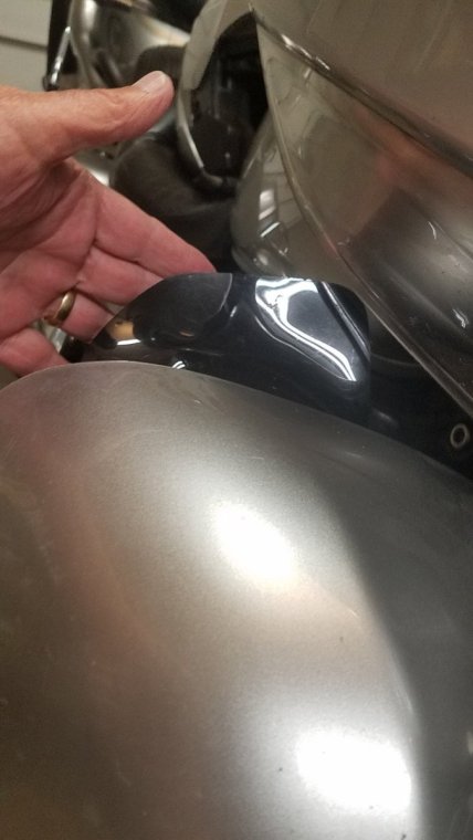 A while back, one of our members made some black plastic wing deflectors to velcro to the underside of the 2nd gens lower fairing. The idea here was to deflect winds and rain from hitting the knees. Made a mistake today after my morning breakfast ride... Was digging through a box in the garage and came across those deflectors! Forgot I had them. Problem: they don't seem to fit perfectly anywhere on top of the lower fairing. I understand how they should fit.... But the underside of the top of the fairing isn't the same contour as the deflector. Anyone have pictures of where they are supposed to fit? My guess is it's a compromise. But I would like to get closer to where they were designed to fit...?