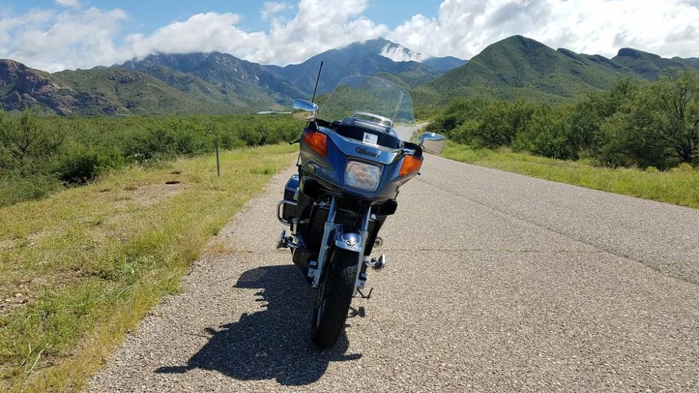 After a long day yesterday of beautiful rain, it was nice this morning...and the 89 Blue Beastie was begging for a ride...off we went. On the way back from stopping at Mt Hopkins Visitor Center near Elephant Head, I stopped to take a picture showing how green everything is in the desert. I was just starting back down the hill when Lo and behold, here came the same Venture Royale I saw last month and posted a picture here on forum. We got a chance to stop and chat for 30 minutes or so! Got to meet Al and Charee who live right here in Green Valley! His trike is an 86! Wonderful couple! We exchanged info and am looking forward to seeing Al and Charee here in the near future. In the meantime, as soon as it cools down, since they love to ride, I can see many rides to Sonoita, breakfast in Rio Rico and maybe a gunfight or two in Tombstone or mine cave exploration in Bisbee! Meeting them made a nice ride so much better. david