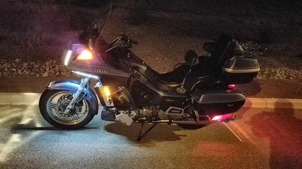 I lowered my forks about 1 inch on the triple tree. Made a big difference in low speed handling. I'm running stock front tire. I like the added width for stability at 75mph on windy days. Make sure you turn the Schrader valve pointing out to make it easier to get to... to air the shocks. When she starts getting hard to find neutral, time to change oil. I've hit the rear brake to hard and locked up. Scary. Went to organic pads. R1 brakes in front are very good change! Or any of the other Yamaha big bike front brakes that fit. The only think I can add, is don't short shift this motor. It's a high revving V4. You will get the best performance and fuel mileage by staying in upper rpms. I use 4th most of the time on State roads between 40 and 65mph. In high winds, I'll shift down to 4th and cruise all day at 65/70. Won't hurt a thing. Don't need a tach, just listen to the motor. I've hit the limiter so many times, we are friends at this point! Seriously, it's a really nice motor...for many reasons. To me, the only downside is the crap gas with the carbs. I counter that with Seafoam or Techron once in a while. Especially if not riding for a month or so. Get a hand pump for shocks. I run 5lbs in front and 25 in rear. Oh....browse through the tech sections. Lots of good stuffing hiding out there! Enjoy the scoot!!!