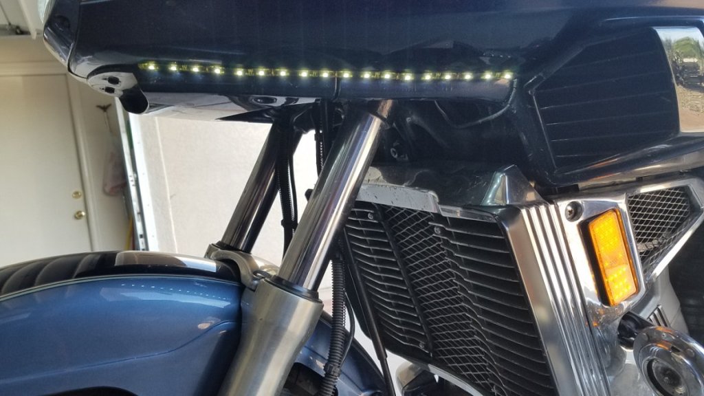 You can buy led panels that replace the side reflectors. Just take off the reflectors and bolt on the lights. The led panels I found fit almost perfectly inside the reflector mount. Just slight trimming. I wired mine to the running lights and turn signals. Get the LEDs that offer two different led sets per light....IE three wires. Ground. Running and turn. This way they also blink with turn signals. I also added a white led strip under the cowl wired to the running lights. Finally, added a set of lights to the rear reflector in the center and one bulb to the reflector on each side in rear underneath the hard bags. Pics show result.... The reflector on the trunk is very bright with headlights on it so I left that alone.