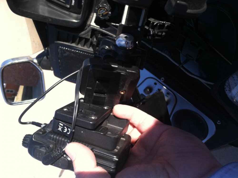 @Larry1963 Hi Larry and crew, wanted to upload some pictures of my Ham radio setup. The radio has a GPS built into it and transmits my position every 2 minutes (or I can change the time). My bike didn't have the radio or any of the fancy stuff. It was a plane jane. I ordered the antenna mount off ebay thinking I would just use a mirror mount bracket to clamp on an antenna too. Once I got it, I just for kicks tried an NMO surface mount and it fit the hole just perfect. I then ordered the 5/8 wave dual band antenna due to lack of ground plane. Screwed it in and routed the wire up to the front. I use a adapter cable to go from pl259 to TNC for the radio. This radio has Shortwave, AM, FM radio, ham bands and many other options. When I get the Sena SH10 i'll be able to use my Sena SR10 headset with the PTT to talk on it too. I'll use this as my AM/FM radio and multi purpose receiver too. I'm having some issues figuring out how to turn the photos upright. After they upload, they seem to turn so not sure. The radio is upright when I look at it. If you have any other questions please let me know. The APRS network is pretty active. http://www.aprs.fi opens a google map with APRS stations overlayed. You can zoom in and out and this will giver you an idea of the coverage. -