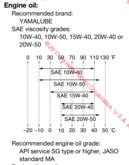 You guys might want to run a 10W-40 oil since it is a jap bike with finer clearances. Heck, according to the chart, if you use 10W-40 oil you are looking at a maximum ambient temp of 110 degrees. At 110 degrees yall won't be riding those things anyway.