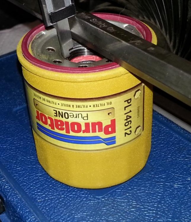 I have recently heard of two reports of a Purolator PL14612 not screwing on far enough to make a complete seal. Seems to work ok on my RSV so far... I will keep an eye out. The factory 5GH-13440-30 has a gasket to first thread depth of 0.300" The Purolator PL14612 has a gasket to first thread depth of 0.235" which is 0.065" less than a factory filter, (I know the caliper is crooked in the picture but I measured it before I took the pic.) I would suggest that you first make sure that the Union Bolt is tightened to 36 ft lbs and if you still can't get a seal it may be time to look for another filter. I have not yet had the chance to measure the depth of a PL14610. Anybody else have one they could look at and tell us?