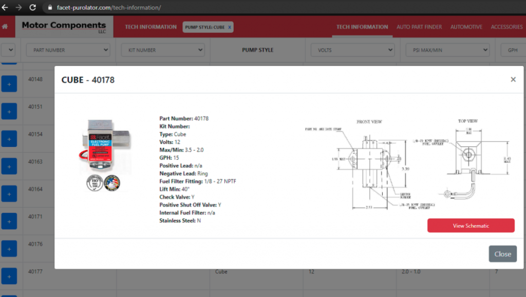 To try and clear this up..... I do not work for Facet or Edelbrock. The Edelbrock 17303 fuel pump is an in-line rotor and vane pump and DOES NOT HAVE A CHECK VALVE OR POSITIVE SHUTOFF. Click Here for Edelbrock 17303 specs The Edelbrock 17303 is a pump style similar to the Facet Posi-Flo series of pumps which also does not have a check valve or positive shut off Click Here for Facet Posi-Flow fuel pump The Facet fuel pump you want that does have a check valve and a positive shutoff is the Model # 40178 Click Here For Facet CUBE Pump -