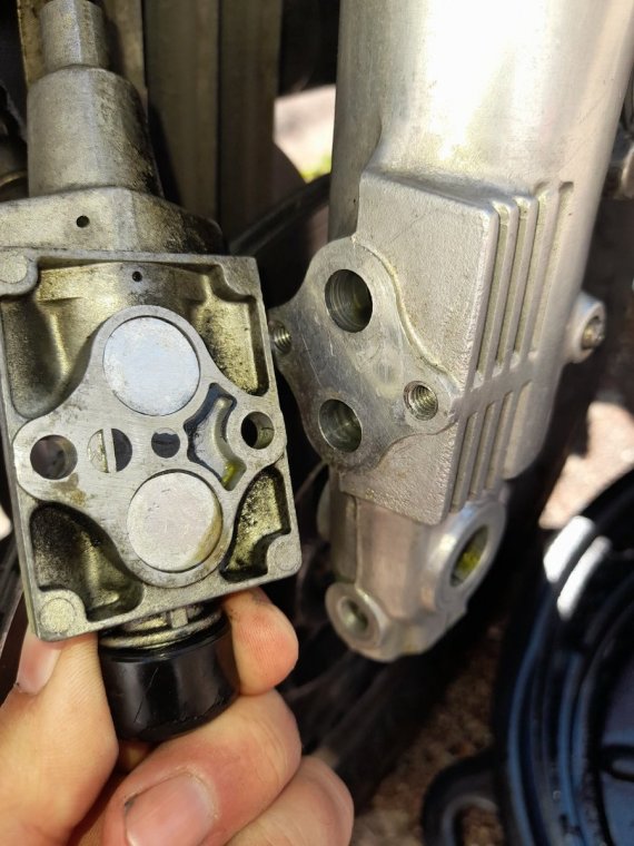 Thanks. OK, then it should be the other way round. Let's see if i got this correct. When it's time to put the washer back, I will drop it from the top, so that the "higher" center points up. then the seal, open side down. I think I got now. I know that in the pic they are not where they end up in assembly. Hopefully get the new seal today and go for a ride.