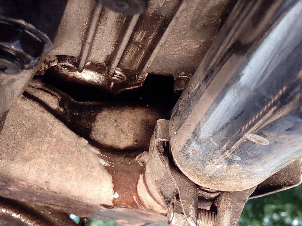 Hi, Last night I noticed a small drips of oil under my bike. Tried to locate the leak this morning. It seems that something is leaking on to the exhaust collector and from there it makes way to the ground. The restoration has been a handfull. The bike is now running nicely and I thought I could move on reapiring the fairing but this new leak is a setback. I also attach a picture of the bike. All couragement is welcome. It's the final stretch where money and motivation are runnig out. I've been able to ride couple of weeks now. The missing side fairings have little bits missing from inside. The front lower fairing is ok. Bu I've chose ride like this still because as it seems little things come up all the time. So have you had such leak ? What is above the collector ? I guess it's radiator and exhausts off to fix this one ? Thank you very much in advance, Anssi