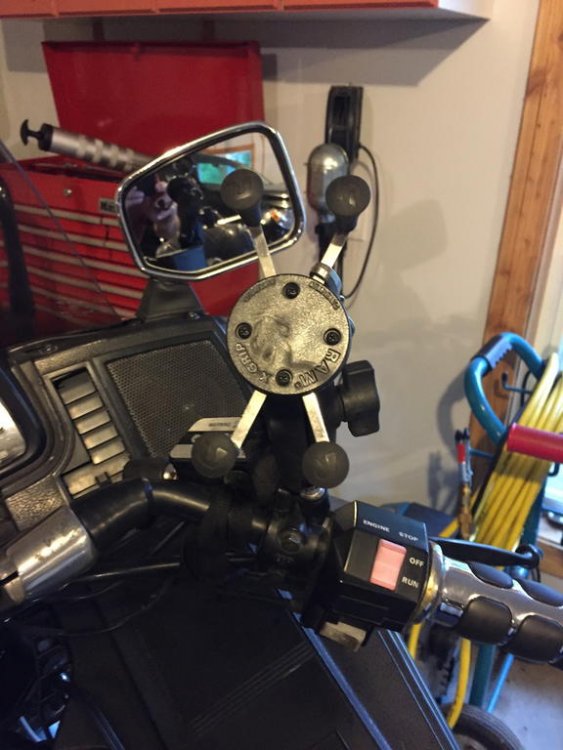 I installed a RAM mount to hold my iPhone. Holds the phone very securely on the roughest of roads. The downside is that it's hard to see except in the darkest of days, and vibration doesn't help. Fortunately, I'm able to connect to the iPhone via my wireless headset, so more often than not I just toss the phone in the dash compartment and go by sound.