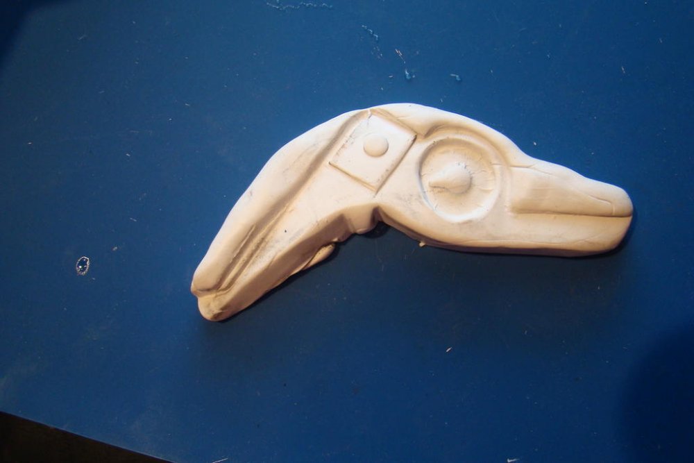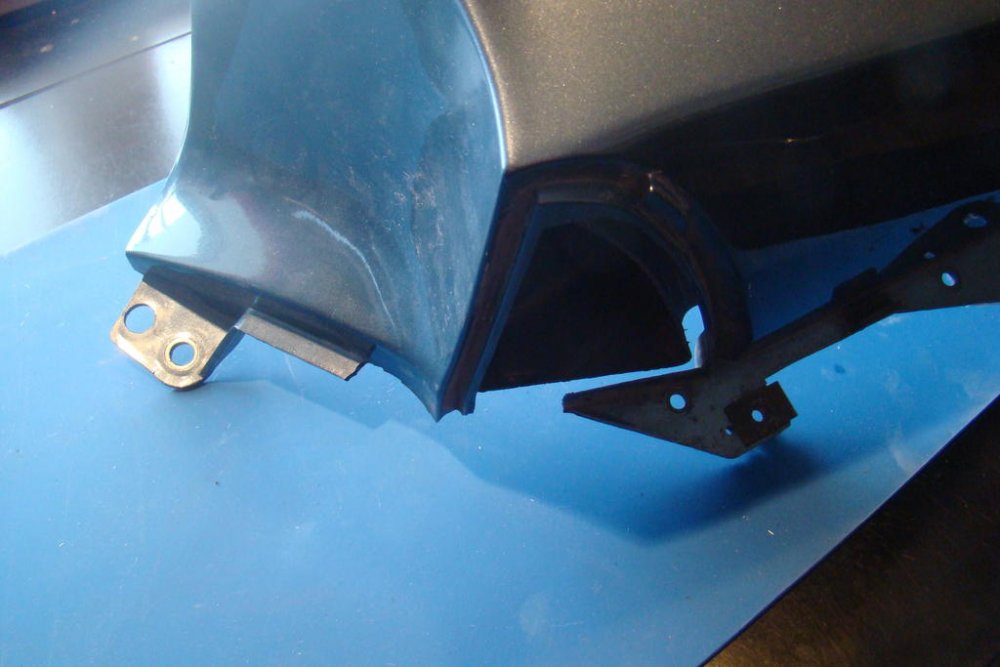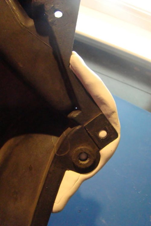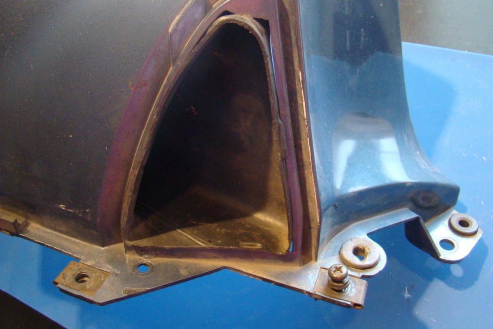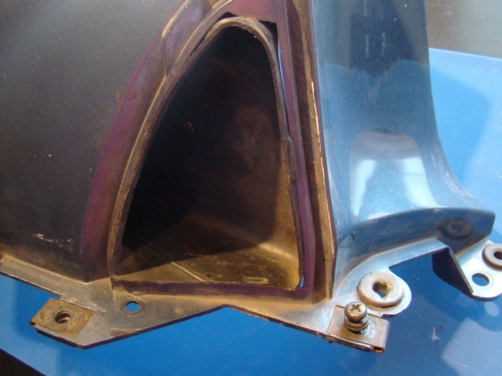 My wife has continued to work repairing plastic parts on my '84 Venture. I thought I'd illustrate how she was able to repair a major break on the right-side upper panel. At the rear end of these panels are two grommet holes that hold the body side panels in place. On the right-side panel, the plastic containing the holes had completely broken off. See pic of unbroken left side and broken right side. Using the unbroken left side panel, and some non-hardening modelling clay, she was able to make a mold of the missing part. With the mold as a guide she cut a template using a thin sheet of clear plastic. With the template as a guide she cut out the repair piece from a sheet of ABS using a scroll saw. Then, using ABS cement, glued it to the panel, and eventually backed it with fibreglass and epoxy. The slot for the spring washer had to cut out with a Dremel tool. All I need do now, is order up a couple of grommets and a spring washer. -