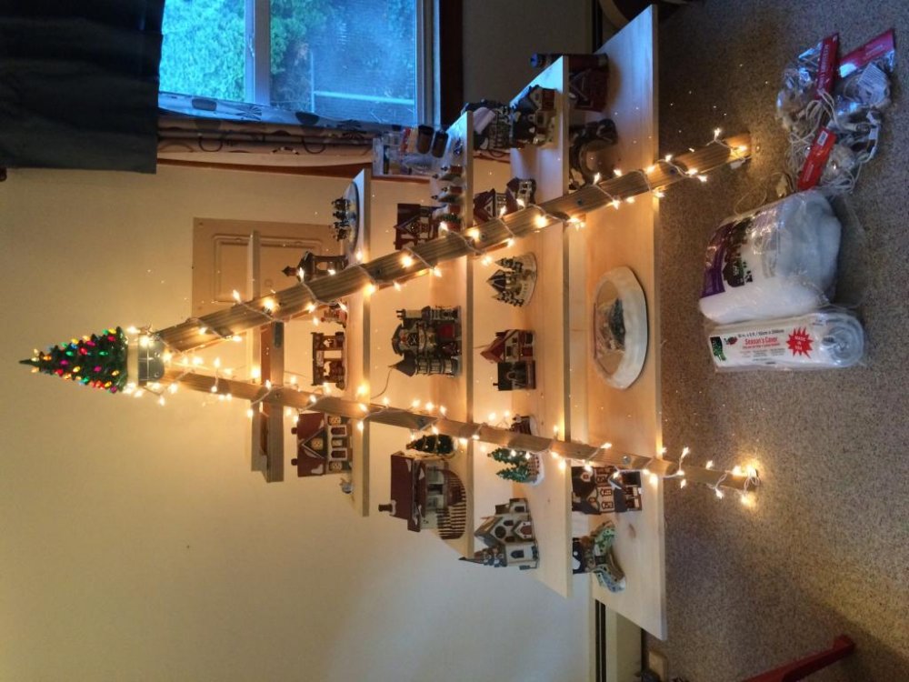 We went a different route this year. I inherited a large Christmas village set from my mother and we decided since we didn't have room for the tree and the village we would compromise. Don't have enough room for everything but here it is still in progress. My wife got the idea from Pinterest I believe.