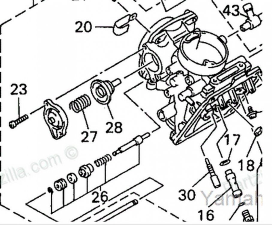 Just did some carb work on my 1997 with 28mm Mikuni's. Here is my parts list. These carbs are almost identical to the Vstar 650, so many of the rebuild parts work. Mikuni 28mm Carb rebuild OEM (Partzilla.com) 3KW-14105-00-00 PILOT SCREW SET $6.33 each (mainly bought for the O-ring you needed as well.) 36Y-14147-00-00 O-RING (Yamaha Motor) $5.03 each (8 needed for the fuel nipple between the carbs. I tried some from autozone, but they leaked) eBay: YAMAHA K&L CARB CARBURETOR FLOAT BOWL CHAMBER O-RING 18-8996 K&L Supply Float Needle 5pk 18-8944
