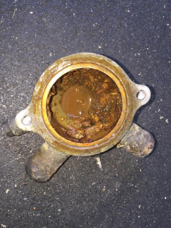 A buddy has a 98 Honda Shadow Spirit with about 60K on it. Complaining about no power at 70mph or so. He had already come to the conclusion that he needed new clutch plates and bought the kit. I rode the bike from his apartment to my house, suspension felt squirrely, but the clutch seemed to be working fine. Put the front wheel up against the back wall of the garage and slowly let out the clutch in 1st gear. Engine bogged down and stalled just as it should. Checked out the bike and found: 1. Mufflers were dangling off the headers, the mounting bracket had broken. The header heat shields were literally holding them on somehow. 2. both tires were about 10 psi 3. other various loose parts. I got it fixed up (and changed the clutch plates). He was happy with the performance. Amazing what 40psi in the tires will do! A few days later I get a call, he is about an hour away and the bike overheated. It has cooled down, it cranks, but won't start. Back in the garage, i found he checked the coolant level at the radiator fill after the overheating event. While doing this he knocked off a wire from the front cylinder coil. Now it can run. Drained the coolant and it was pure rust. The thermostat worked fine and I flushed out the system. I dont know how it ran as long as it did with the cooling system like it was!