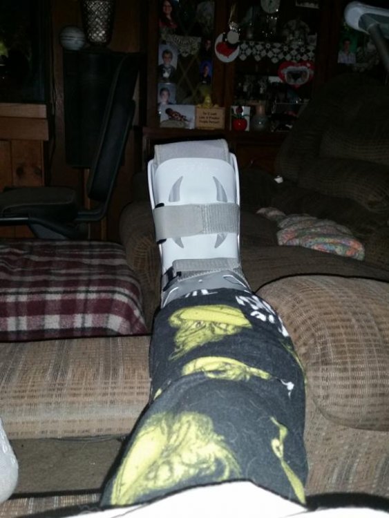 Da foot is feeling a bit less bad today. So far I have done no pain pills today, just over the counter pain relievers. If today goes well I may even try getting to the bedroom tonight. That will make Erika happy till that big boot lands on one of her feet in the middle of the night. My toes still like like a bunch of little polish sausages, it is hard to tell how much swelling is in the rest of the foot due to all the bandages, But doc said i should not remove the bandages, I should wait and let her remove them next week when I go in to get the stitches out. I can wiggle my toes and move my ankle to do the exercises to keep things moving. So I guess so far things are moving along per the plan. I just wish there were a way to compress the 6 month plan to to something more manageable. The repairs to where the tendons and ligaments attach to the bones will not be fully healed for at least a year.